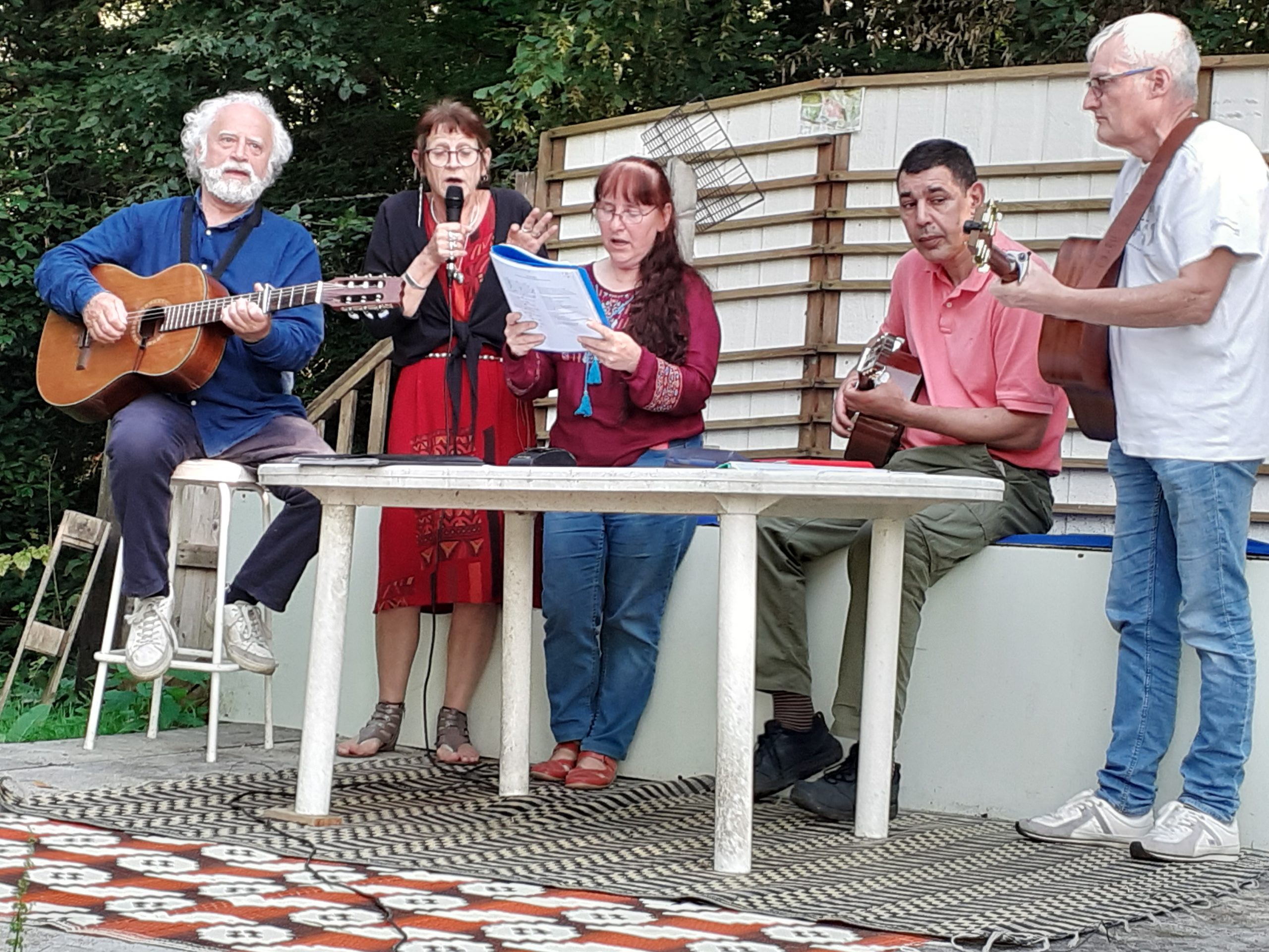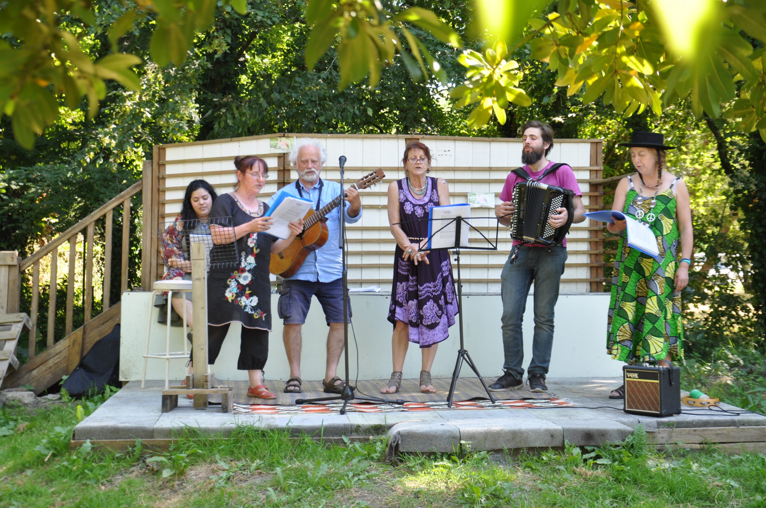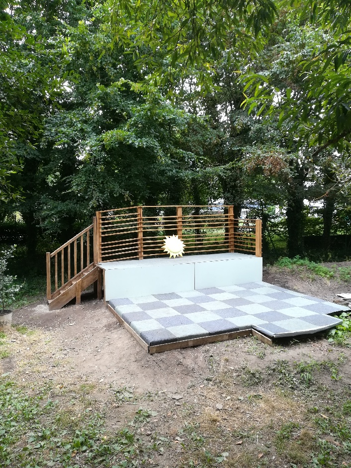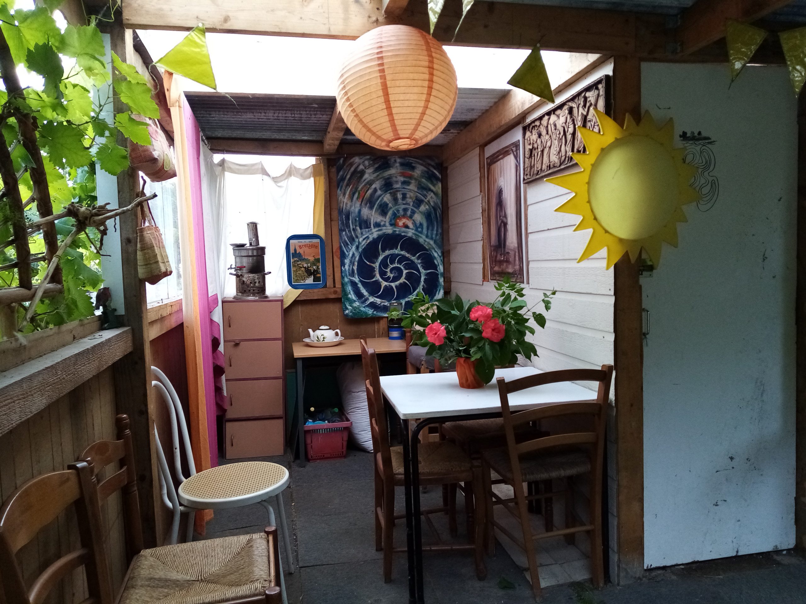 Cet espace de vie culturelle en tous sens nous a permis de créer un nouveau cabanon, une scène théâtrale, des cimaises pour des expositions, et un ensemble de bancs et tables pour l’ échange. Nous disposons d’un puits et de la compagnie des Rouges-Gorges présents depuis le début de l’aventure en 2012.